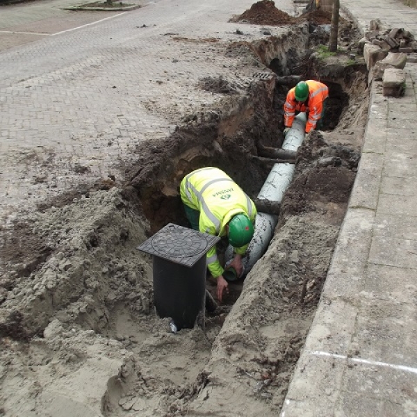 Drainage in de Aert van Neerstraat in de gemeente Leeuwarden.