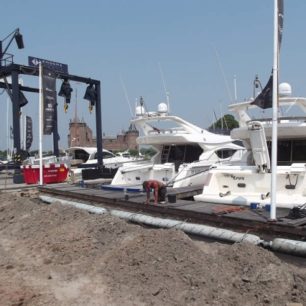 Drainage aanlegkade in de haven van de Gemeente Muiden.