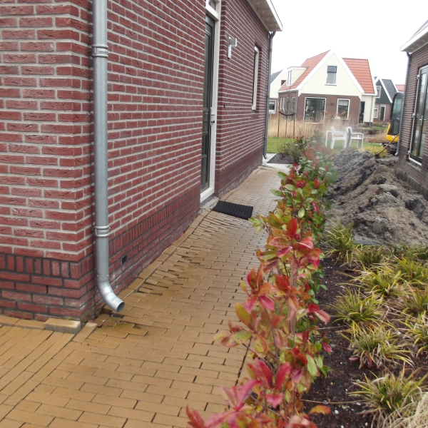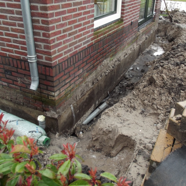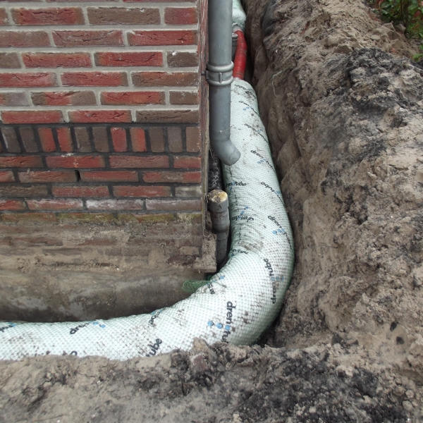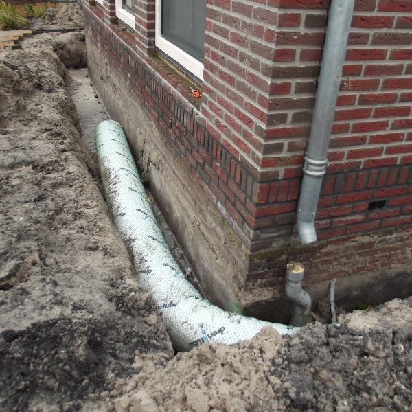 Er is gekozen om Drenotube aan te brengen rondom de woningen en het water af te voeren naar nabij gelegen oppervlakte water.