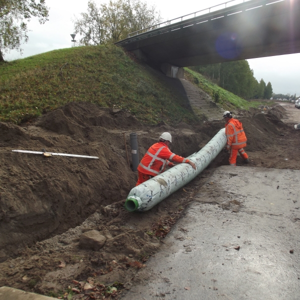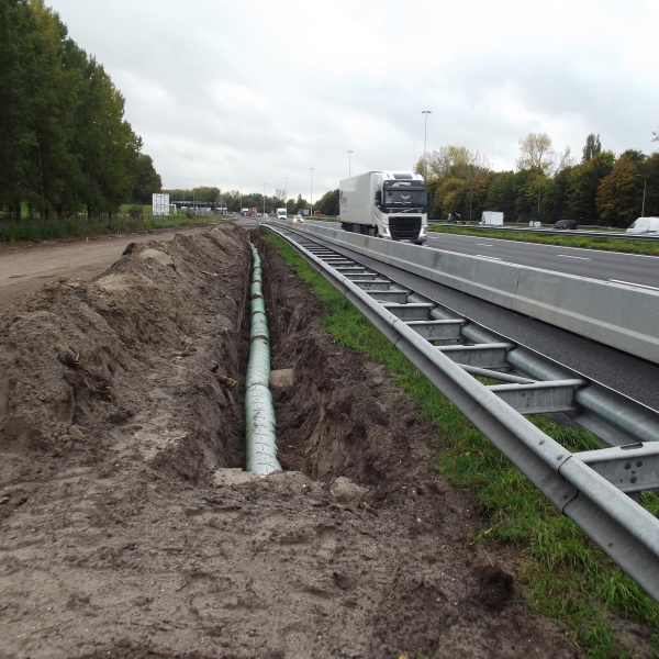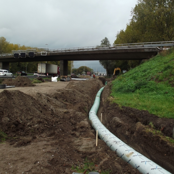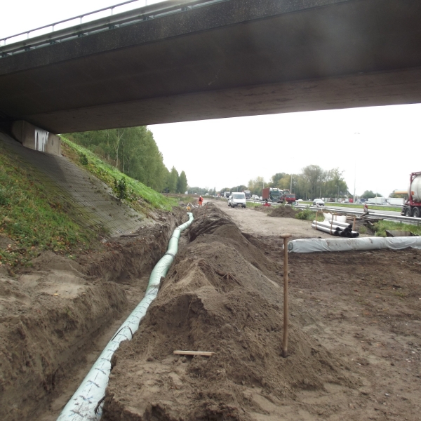 Bij de op en afritten en de parallelweg wordt als drainage de Drenotube toegepast.
